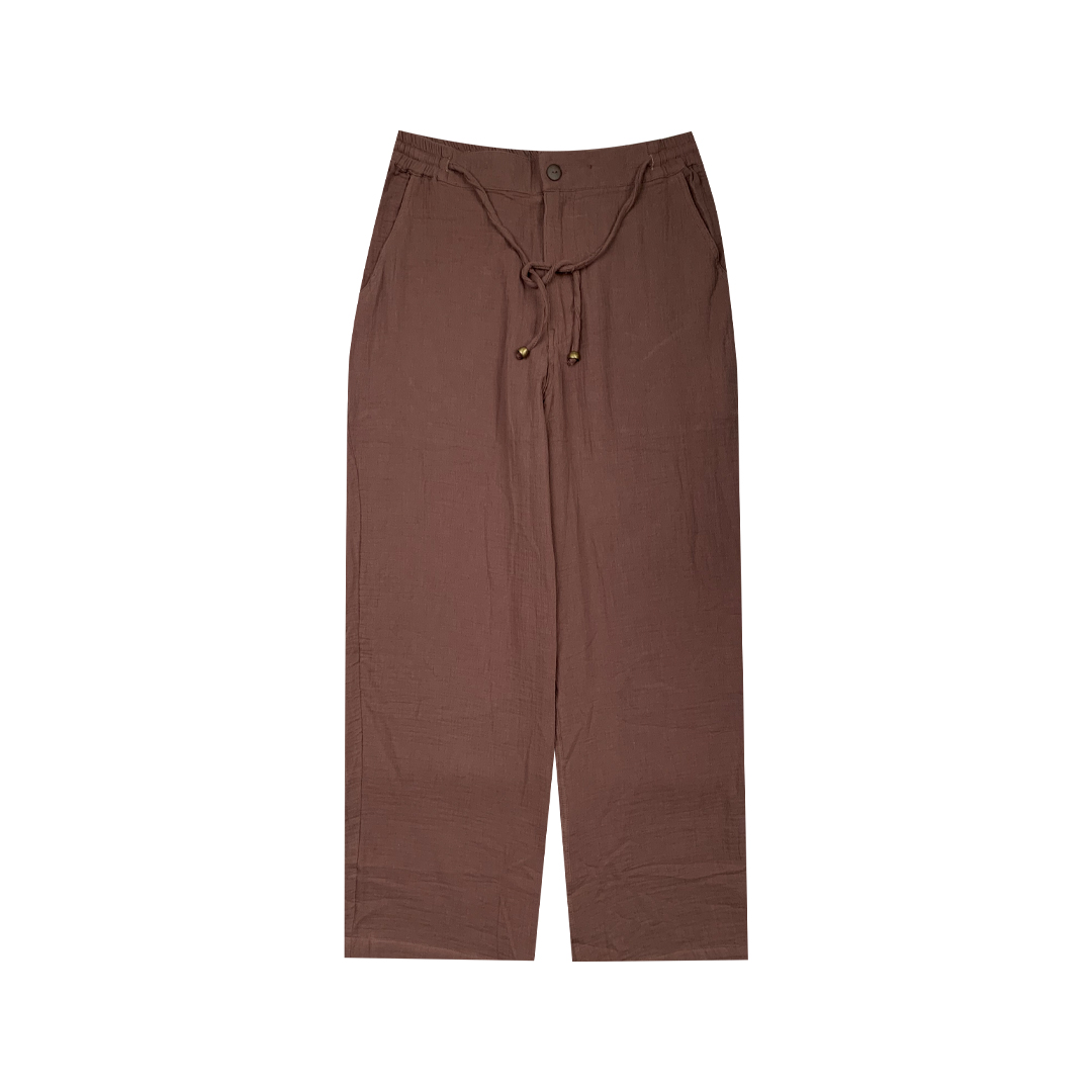 These comfortable long pants are made from soft fabric and have been pre-washed for a relaxed, worn-in feel. Perfect for lounging or casual outings, they offer a cozy fit with breathable texture.